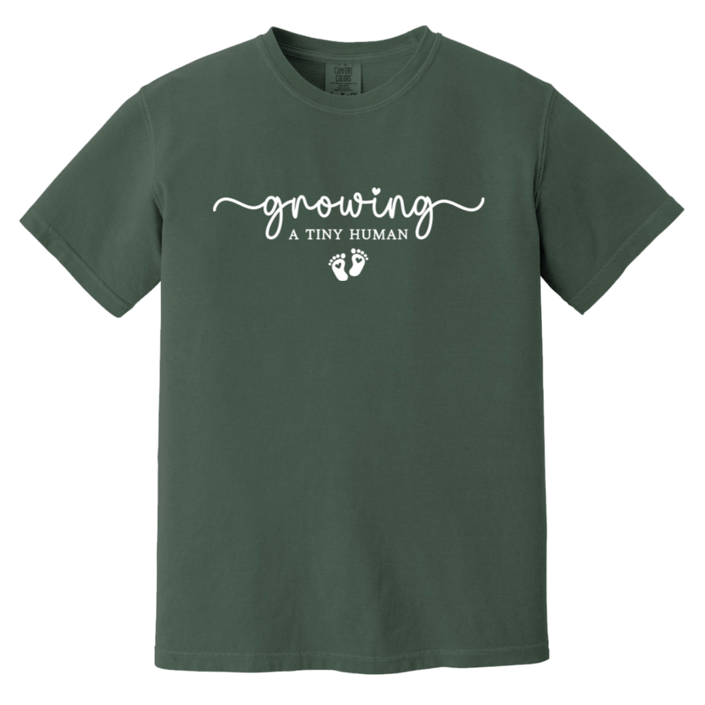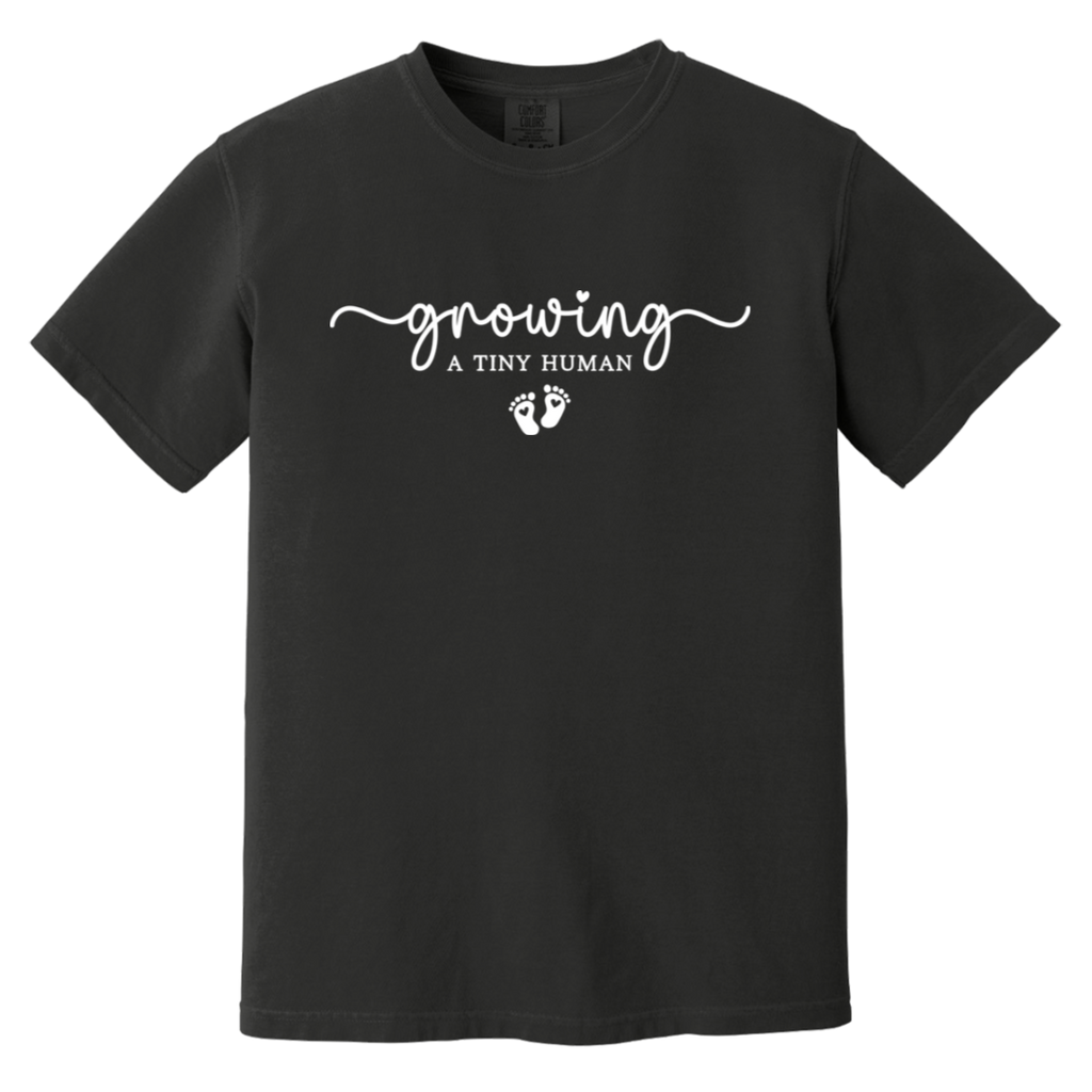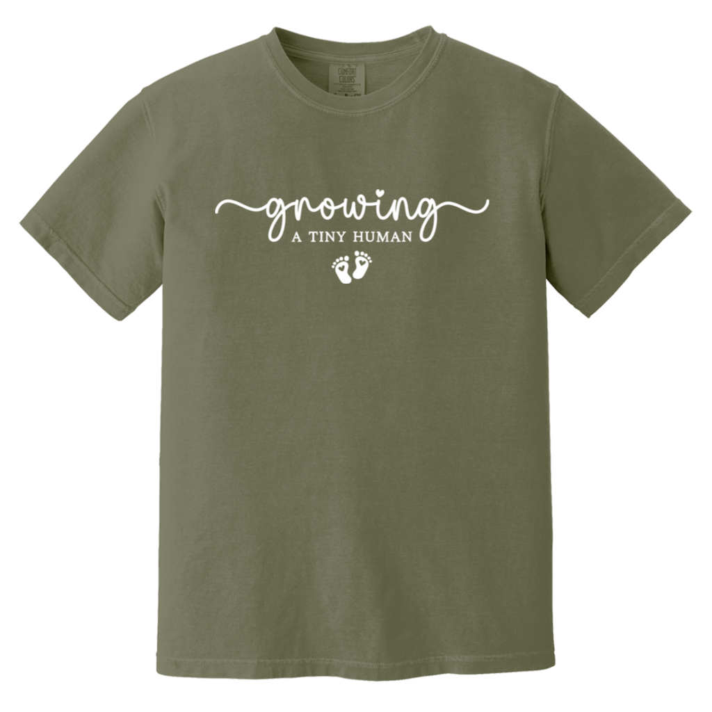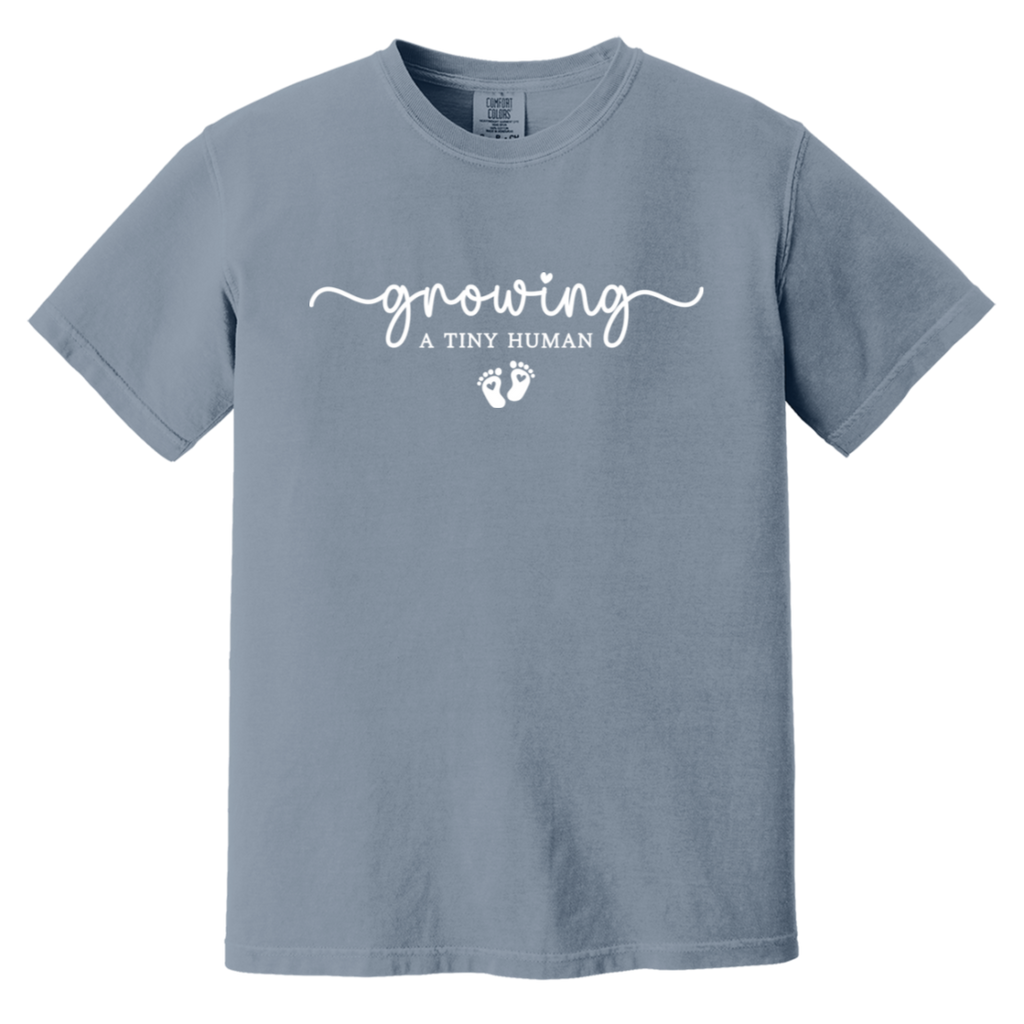 S03005 - Growing a tiny human Footprint - White DS CC1717 Heavyweight Garment-Dyed T-Shirt