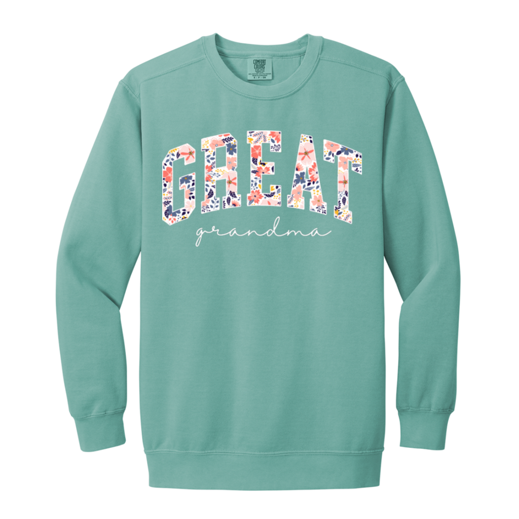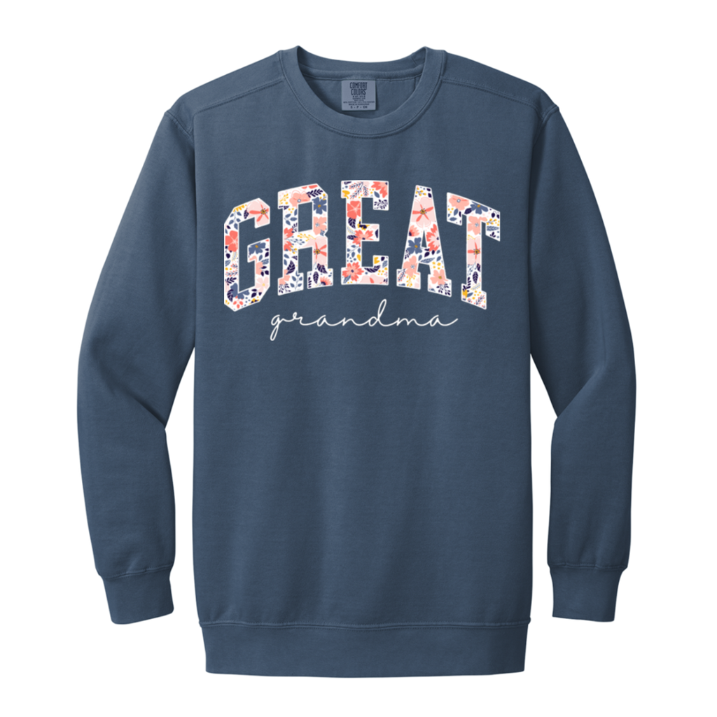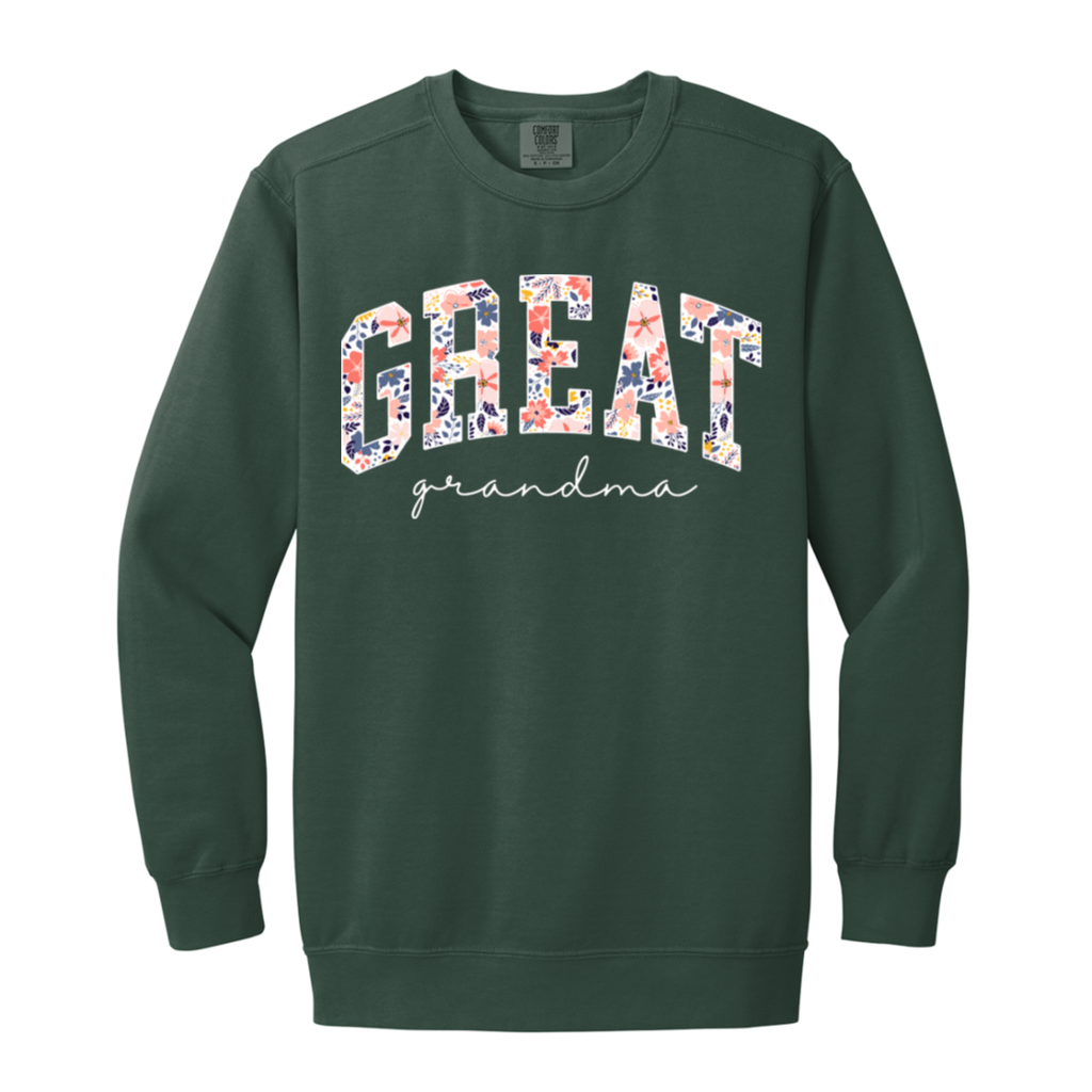 S03168 - Floral Great Grandma - White DS 1566 Garment-Dyed Adult Crewneck Sweatshirt