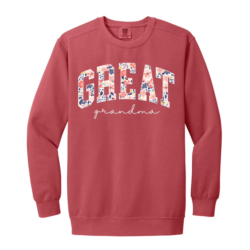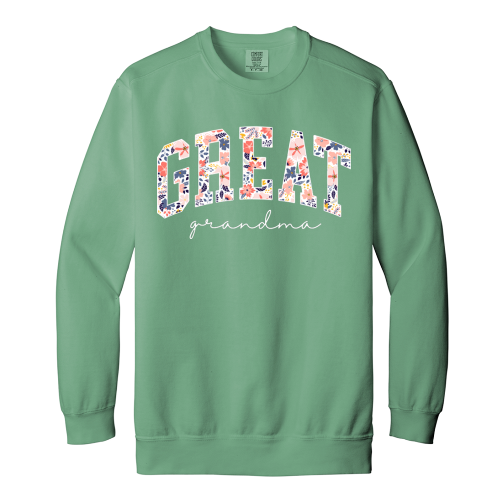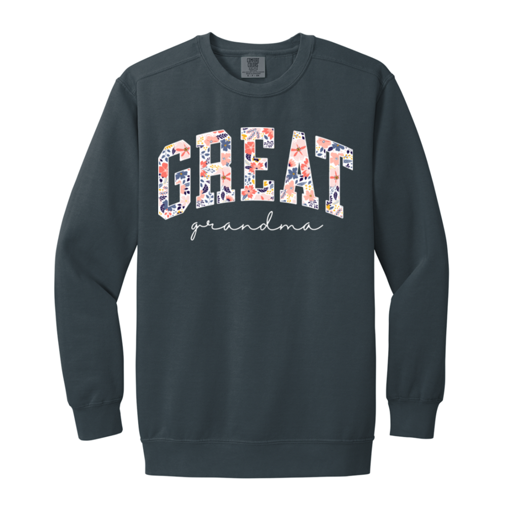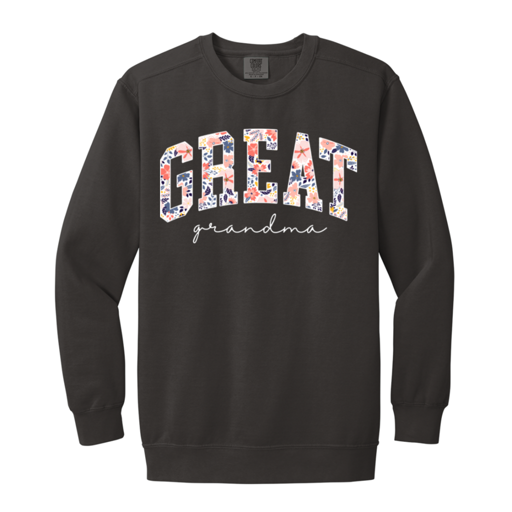 S03168 - Floral Great Grandma - White DS 1566 Garment-Dyed Adult Crewneck Sweatshirt