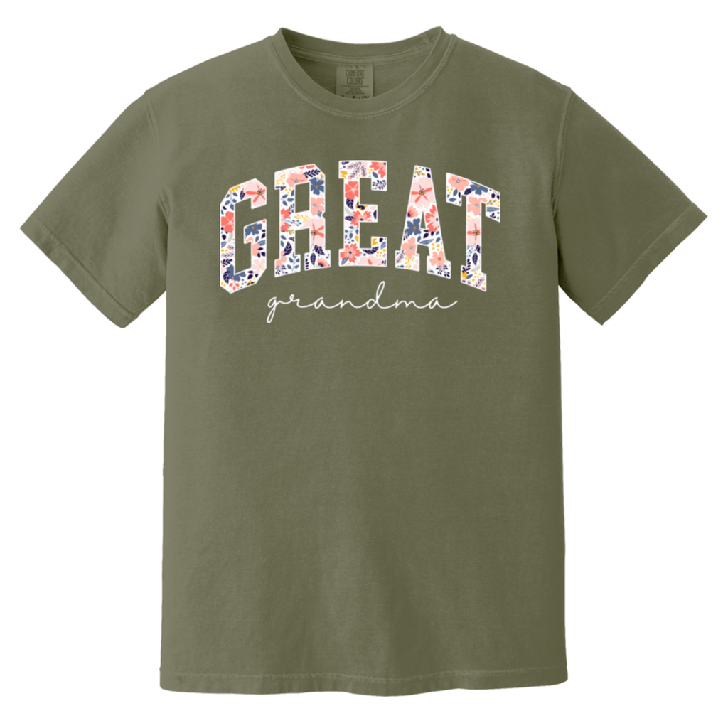S03168 - Floral Great Grandma - White DS CC1717 Heavyweight Garment-Dyed T-Shirt