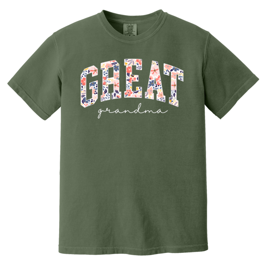 S03168 - Floral Great Grandma - White DS CC1717 Heavyweight Garment-Dyed T-Shirt