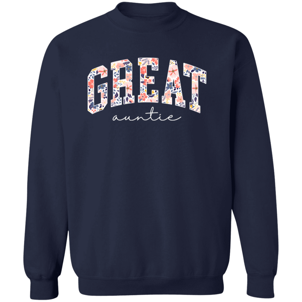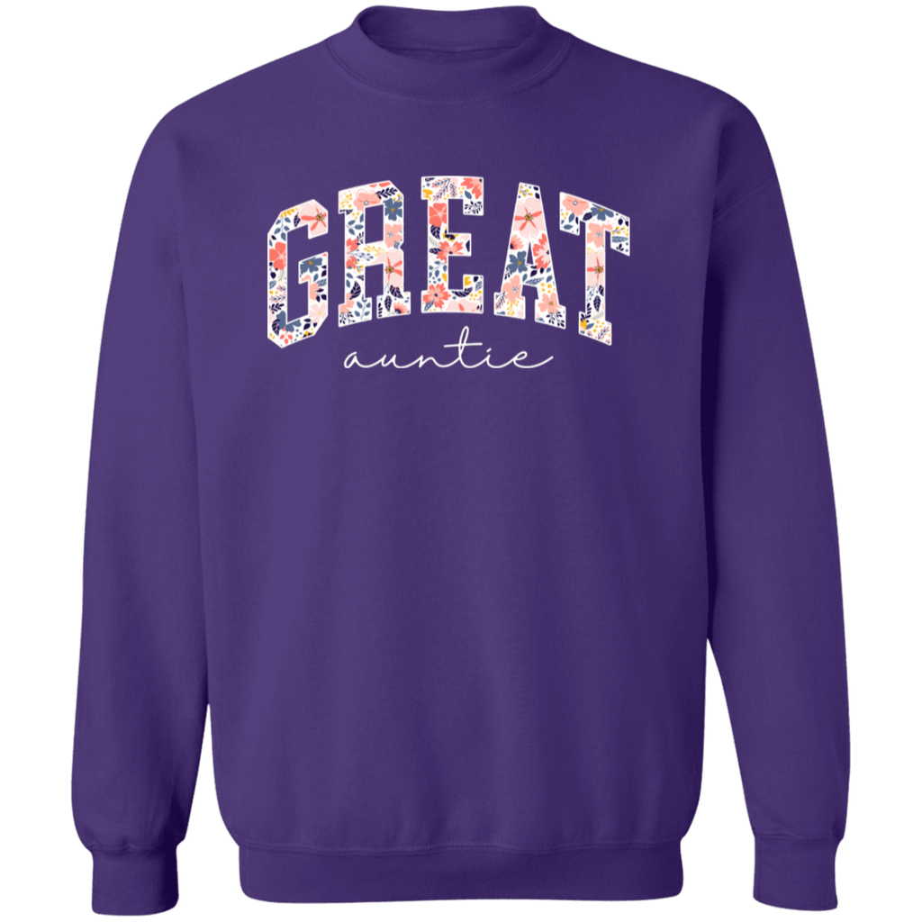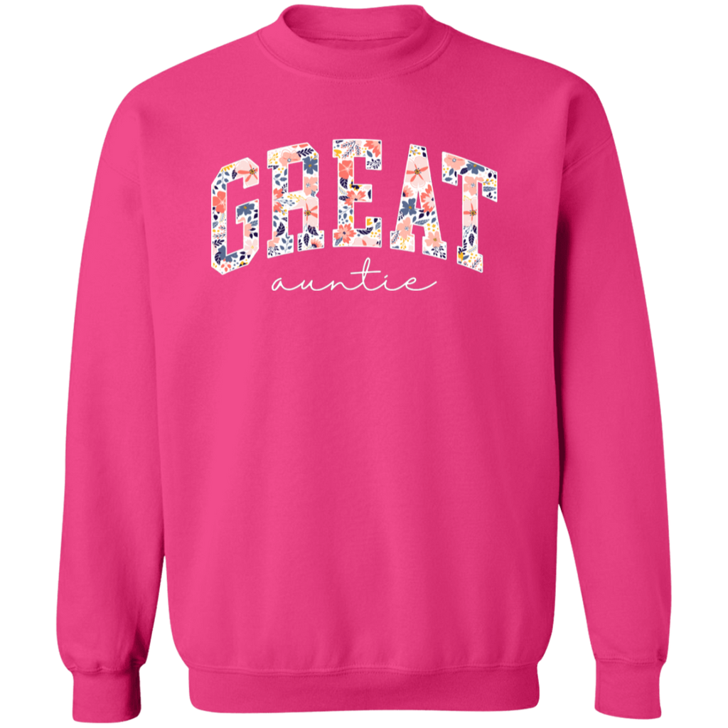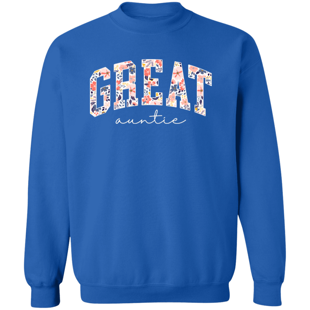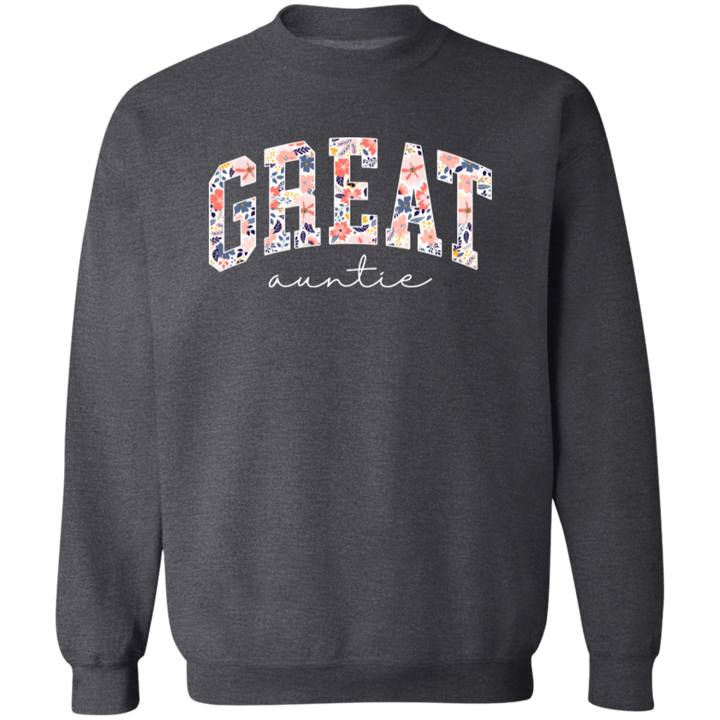 S03217 - Floral Great Auntie - White DS G180 Gildan Crewneck Pullover Sweatshirt