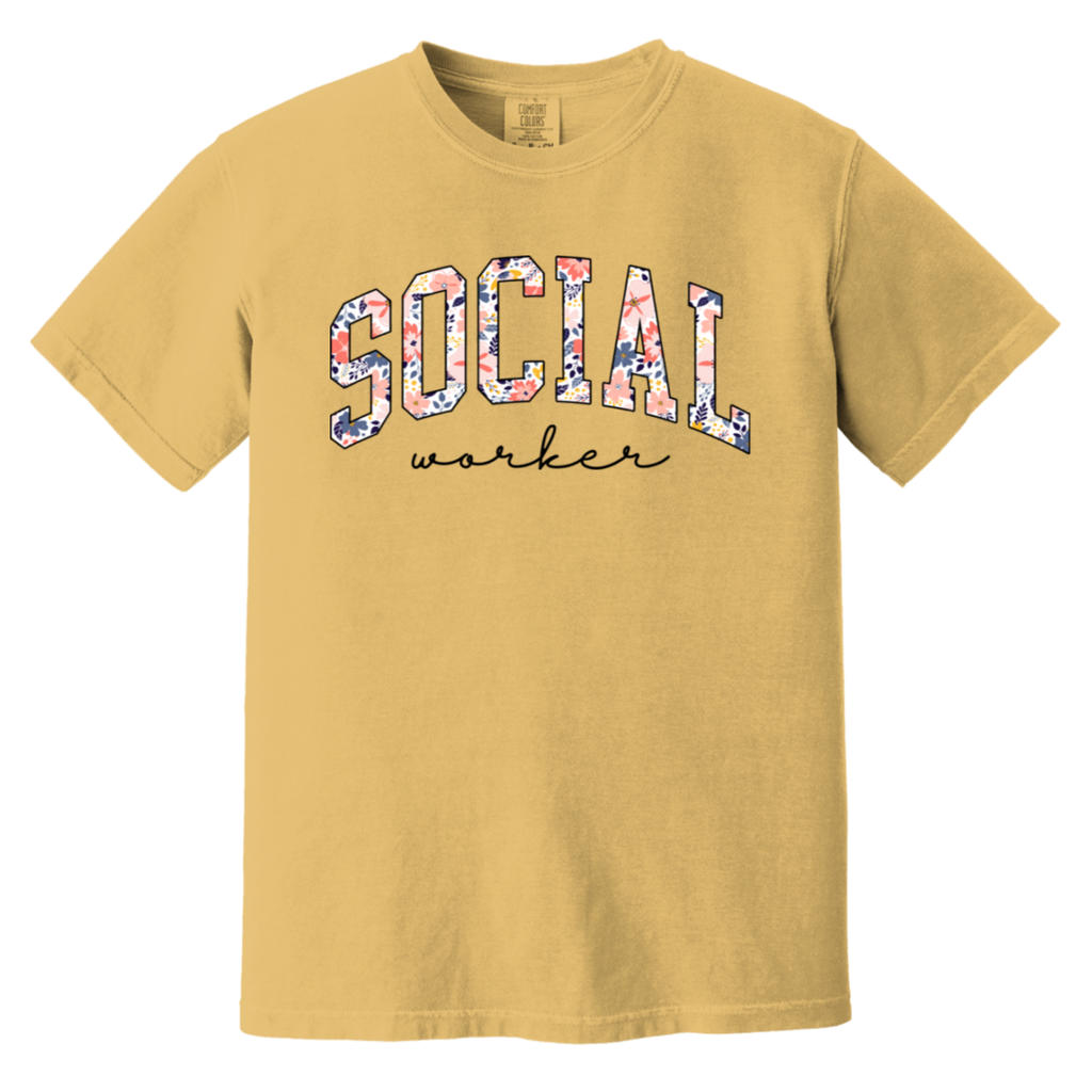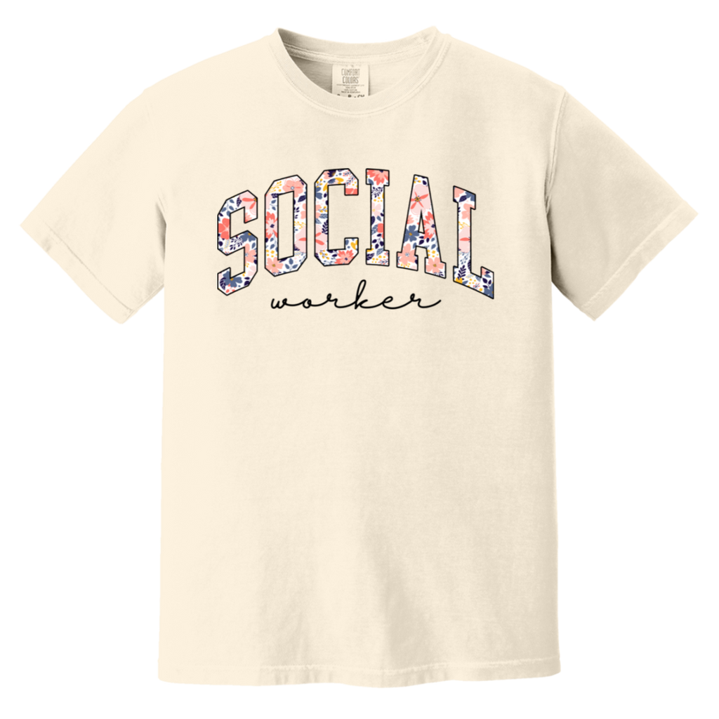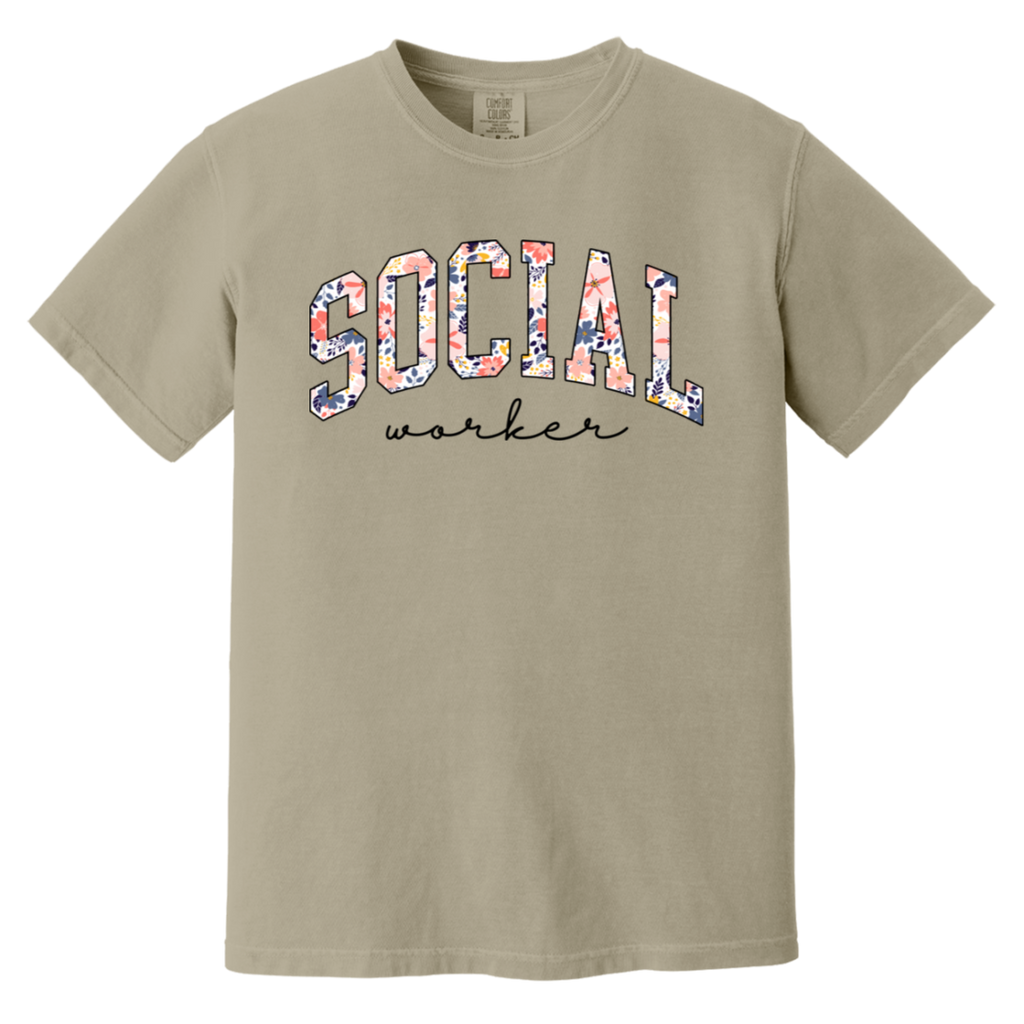 S03386 - Floral Social Worker - Black DS CC1717 Heavyweight Garment-Dyed T-Shirt