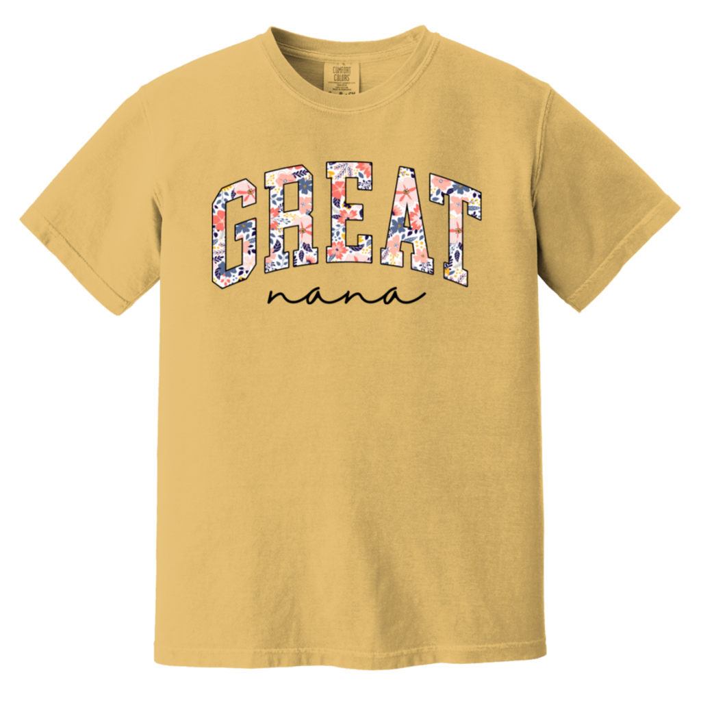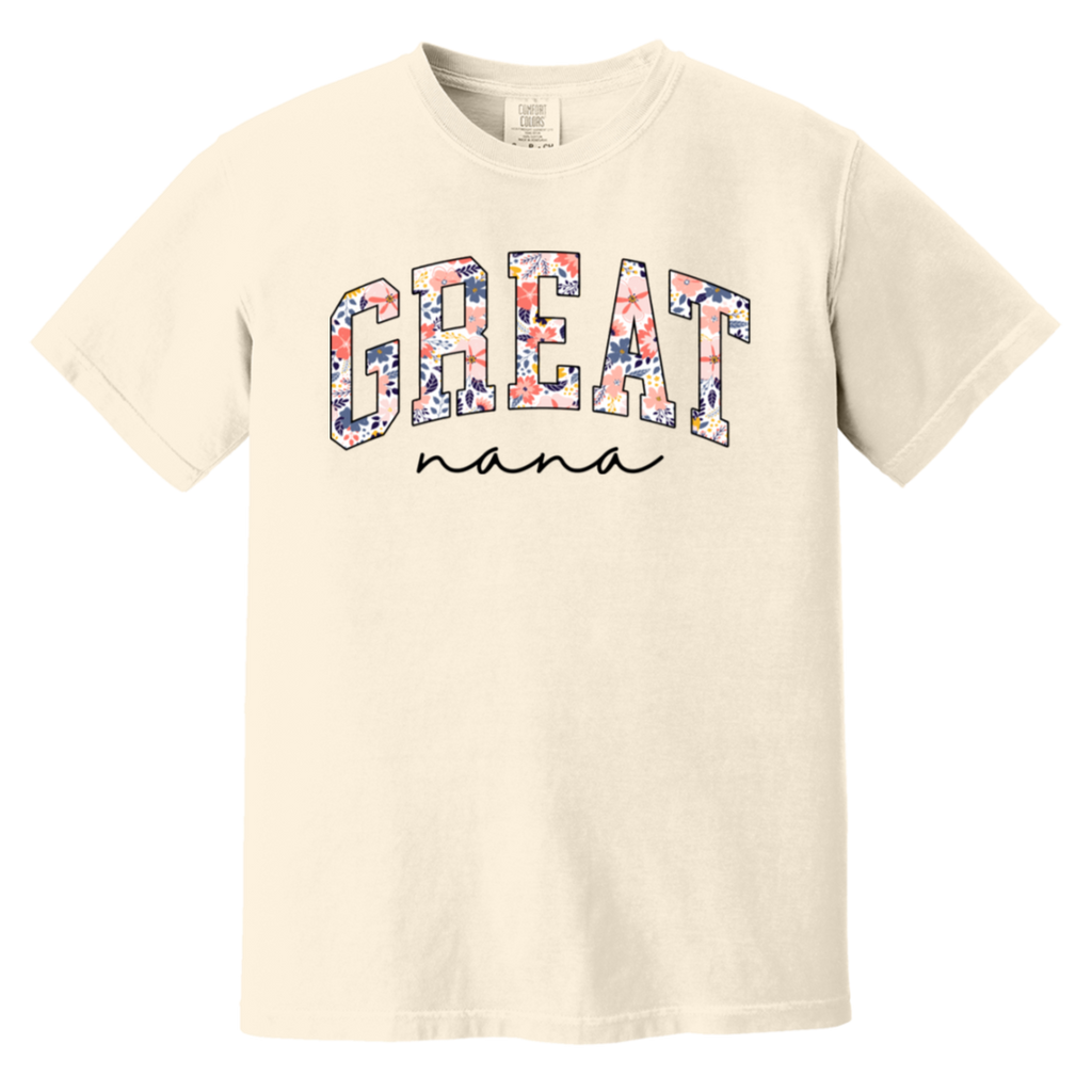 S03414 - Floral Great Nana - Black DS CC1717 Heavyweight Garment-Dyed T-Shirt
