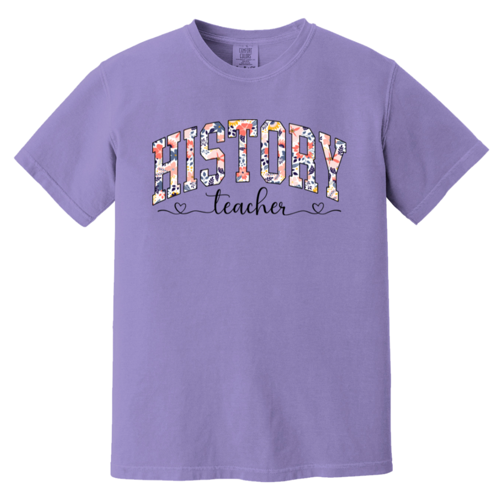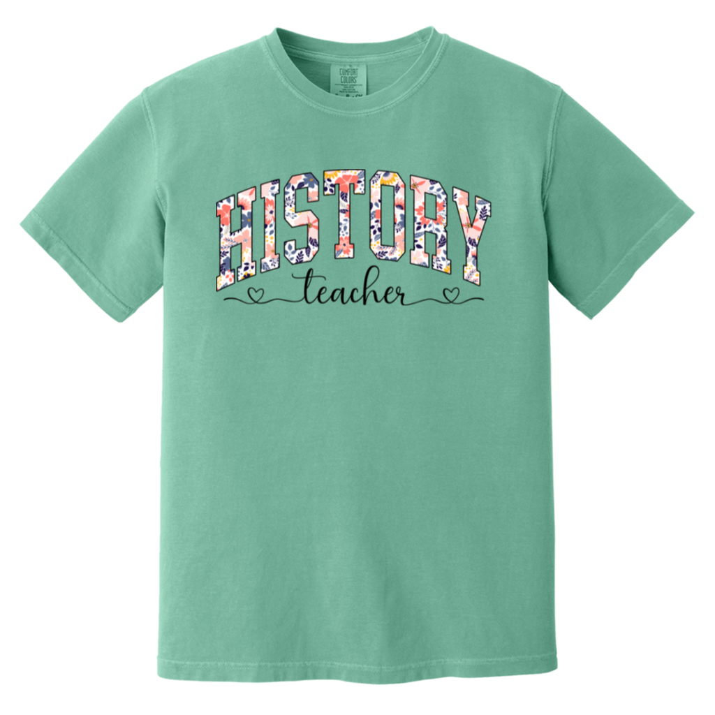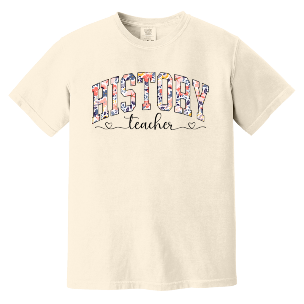 S03688 - Floral History Teacher - Black DS CC1717 Heavyweight Garment-Dyed T-Shirt