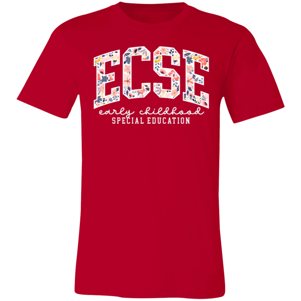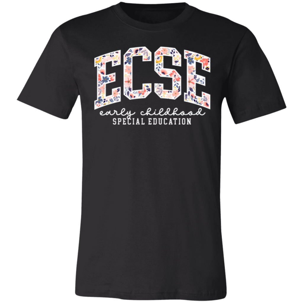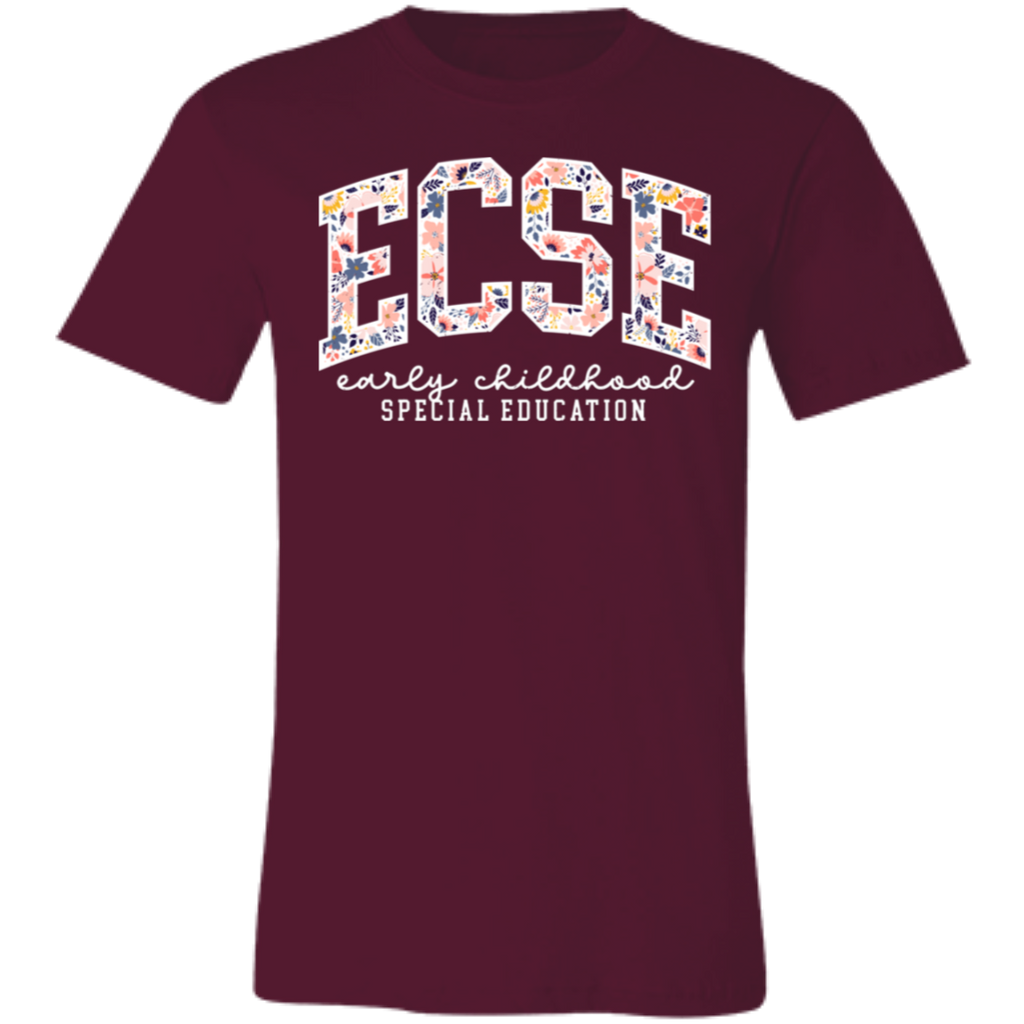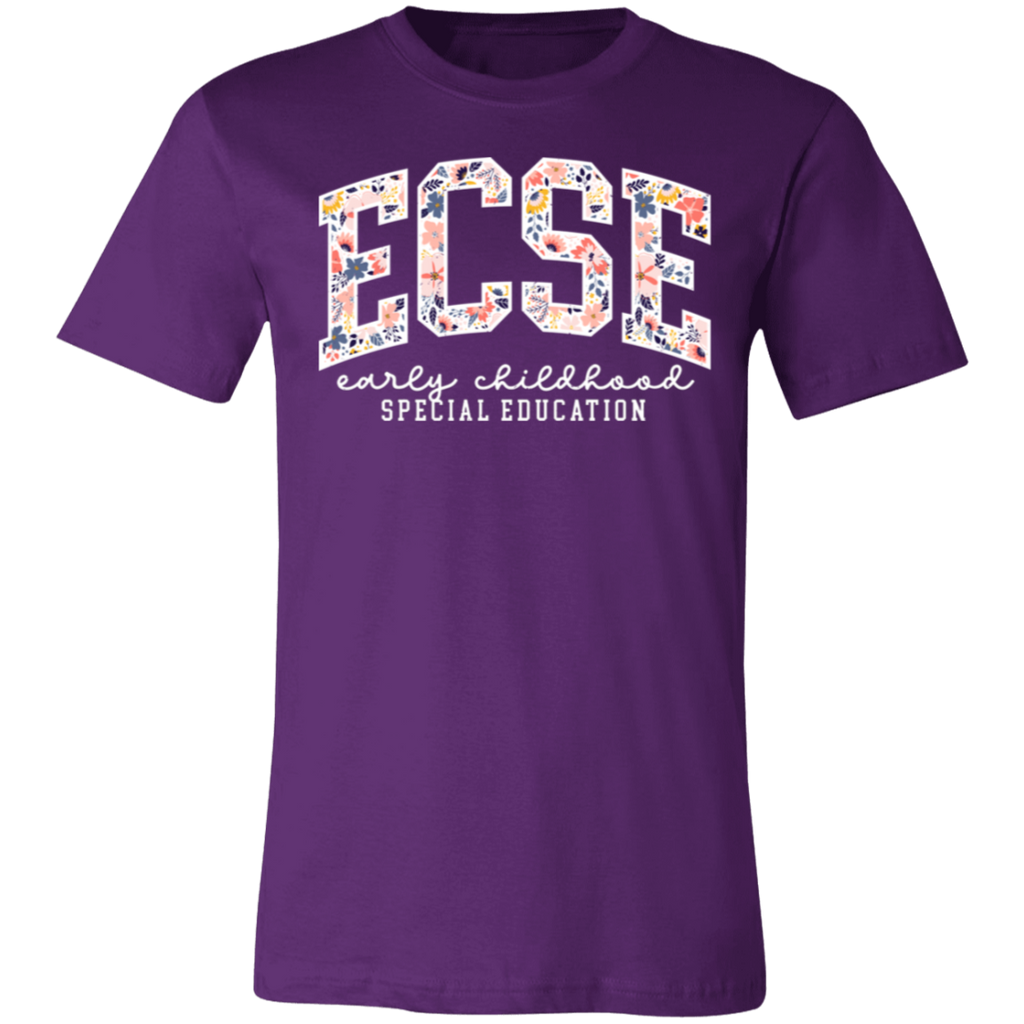 S04199 - Floral ECSE Early Childhood Special Education - White 3001C Bella + Canvas Unisex Jersey Short-Sleeve T-Shirt