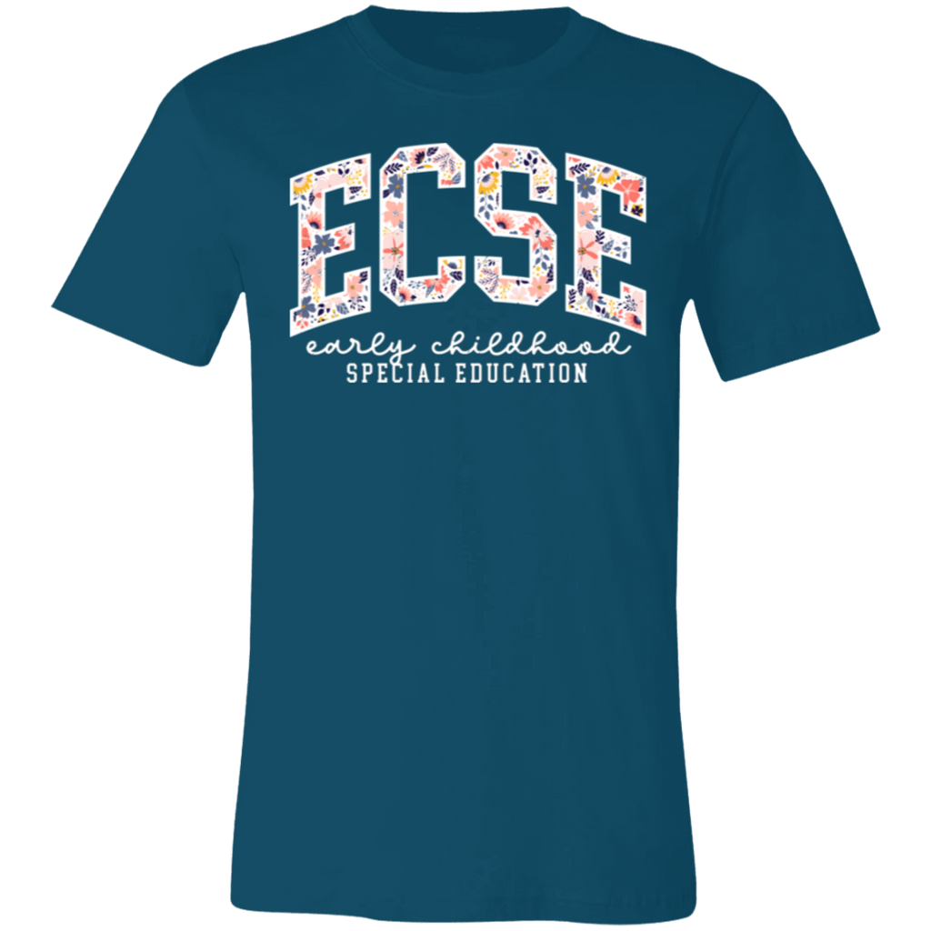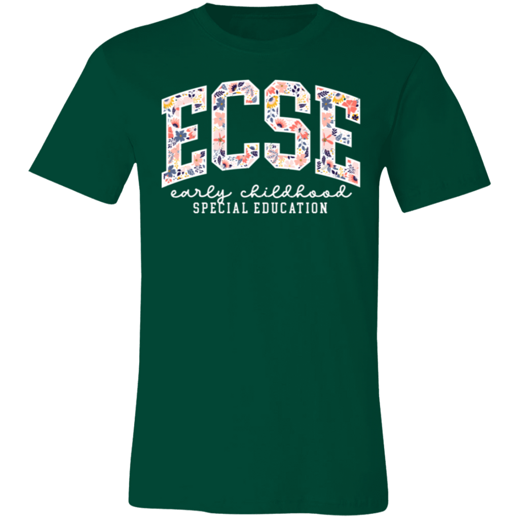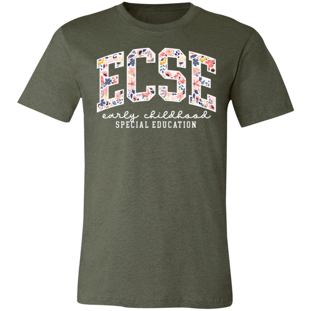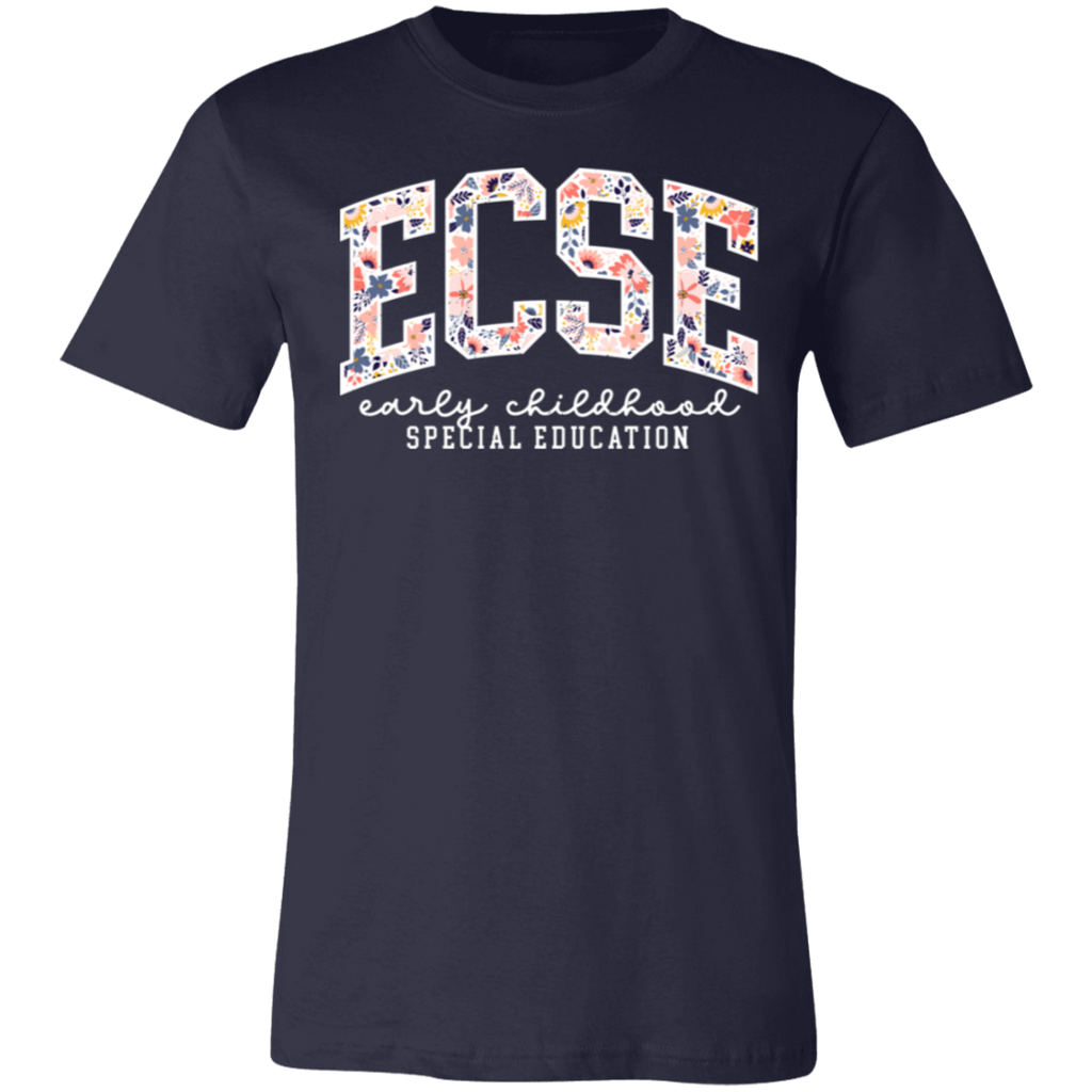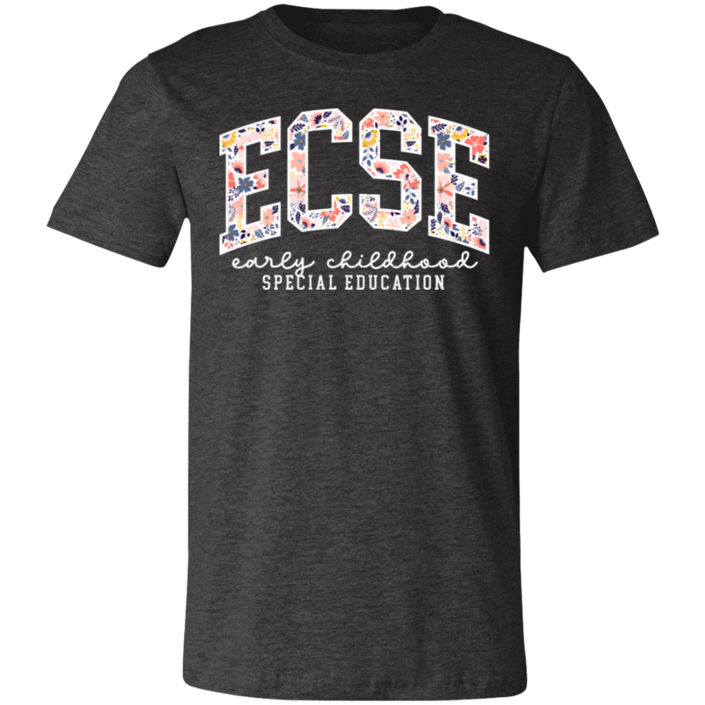 S04199 - Floral ECSE Early Childhood Special Education - White 3001C Bella + Canvas Unisex Jersey Short-Sleeve T-Shirt