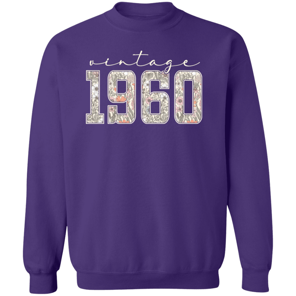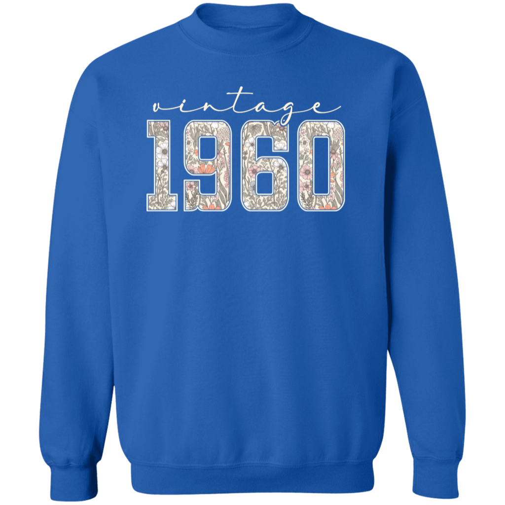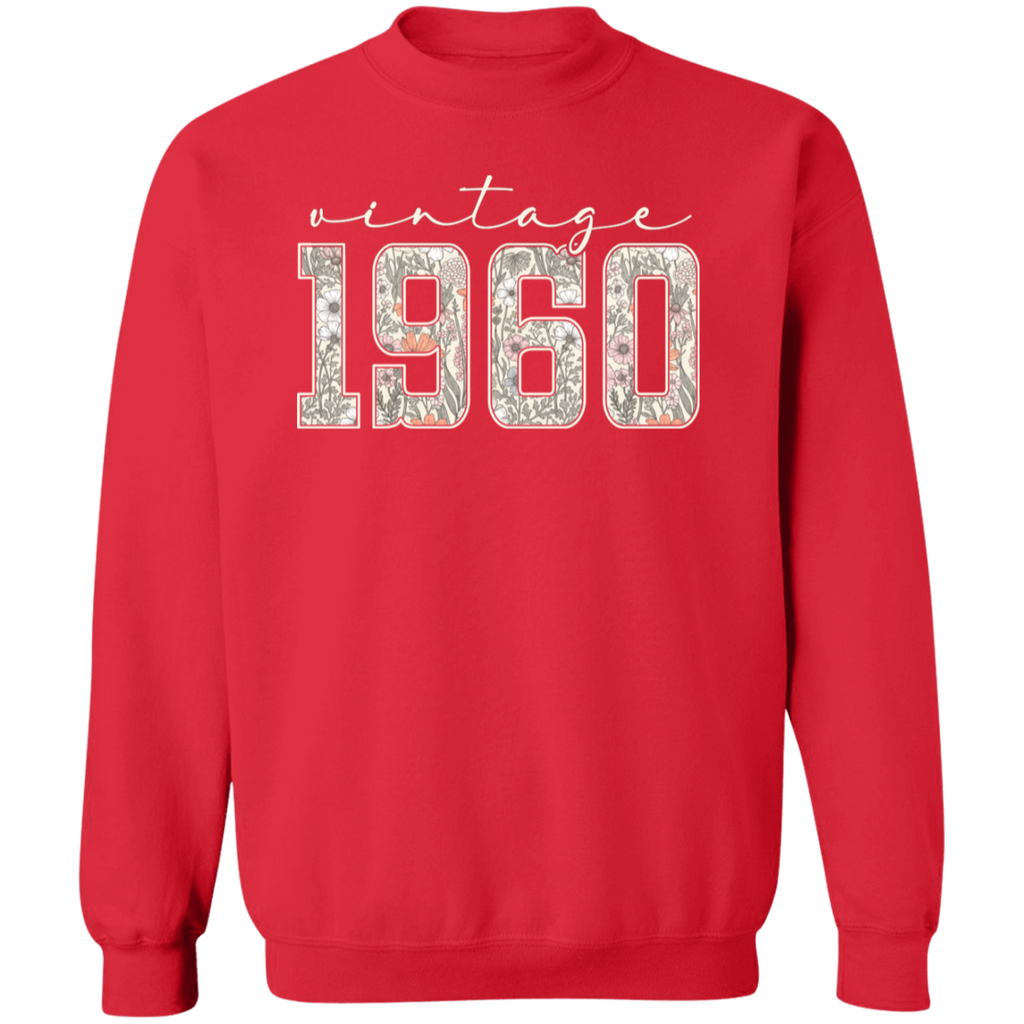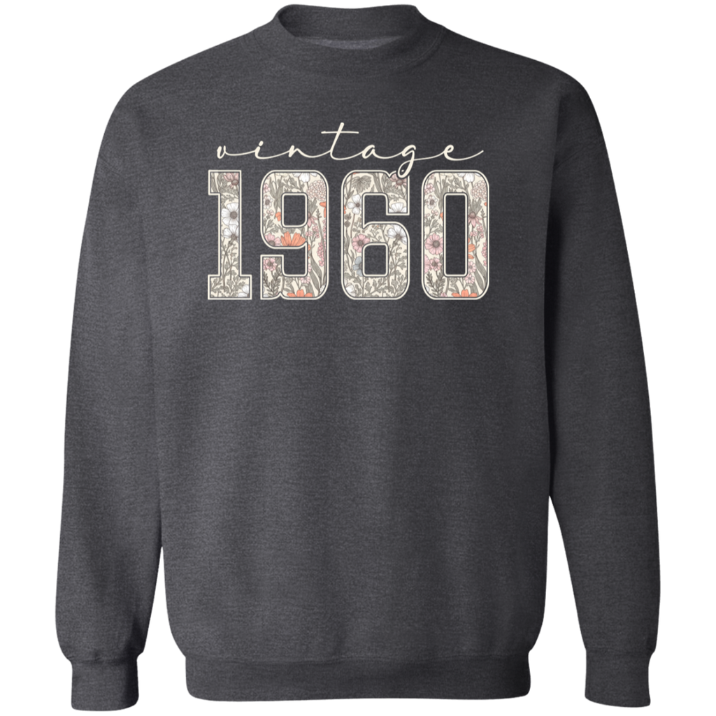 S04237 - Vintage 1960 - 65th Birthday - White G180 Gildan Crewneck Pullover Sweatshirt
