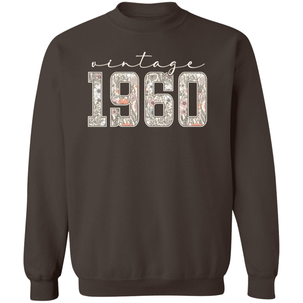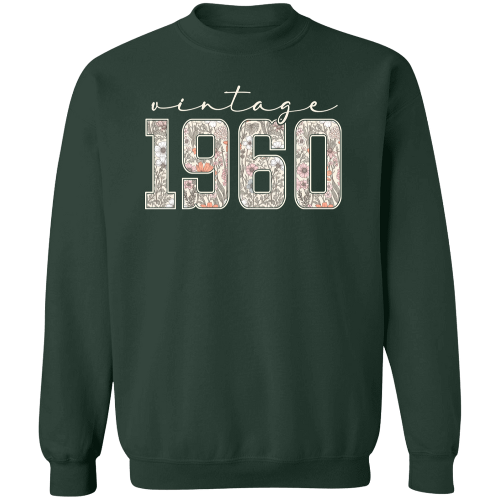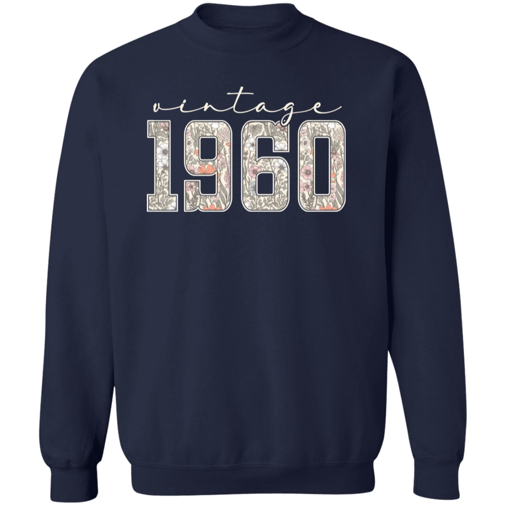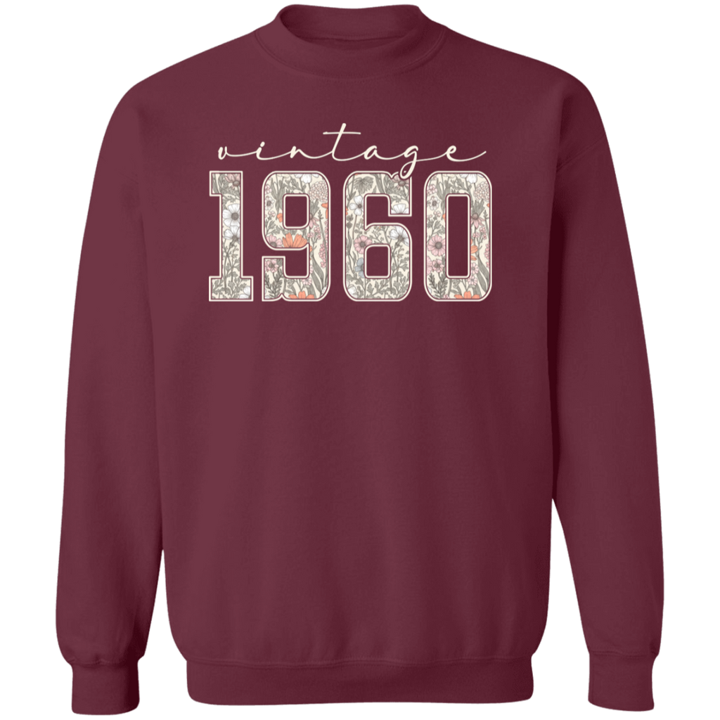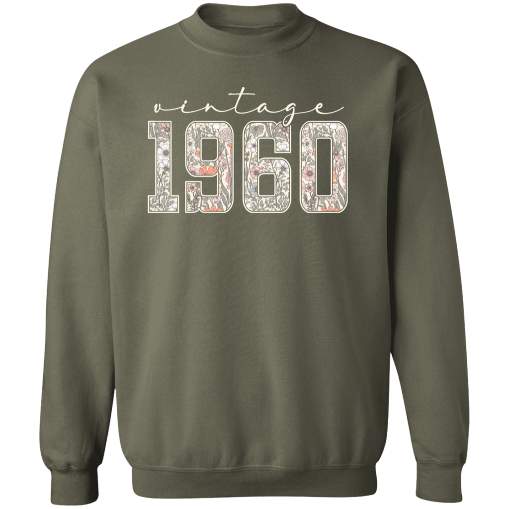 S04237 - Vintage 1960 - 65th Birthday - White G180 Gildan Crewneck Pullover Sweatshirt