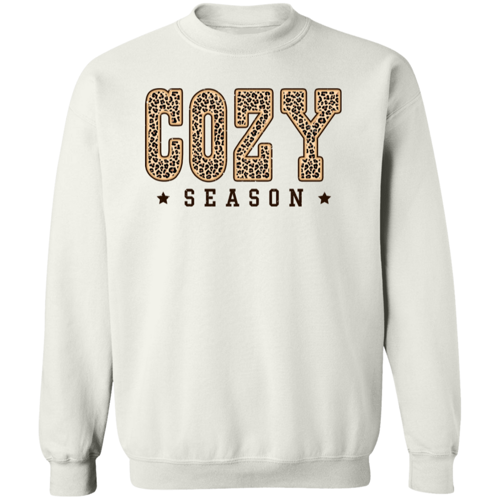 S04260 - Leopard Cozy Season - White G180 Gildan Crewneck Pullover Sweatshirt