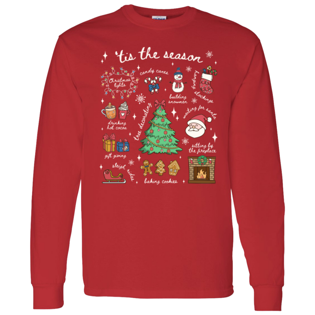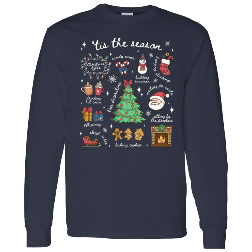 S04703 - Tis the season Christmas - White DS G540 LS T-Shirt 5.3 oz.