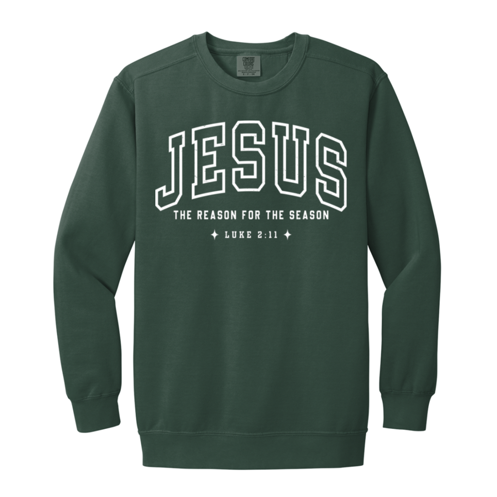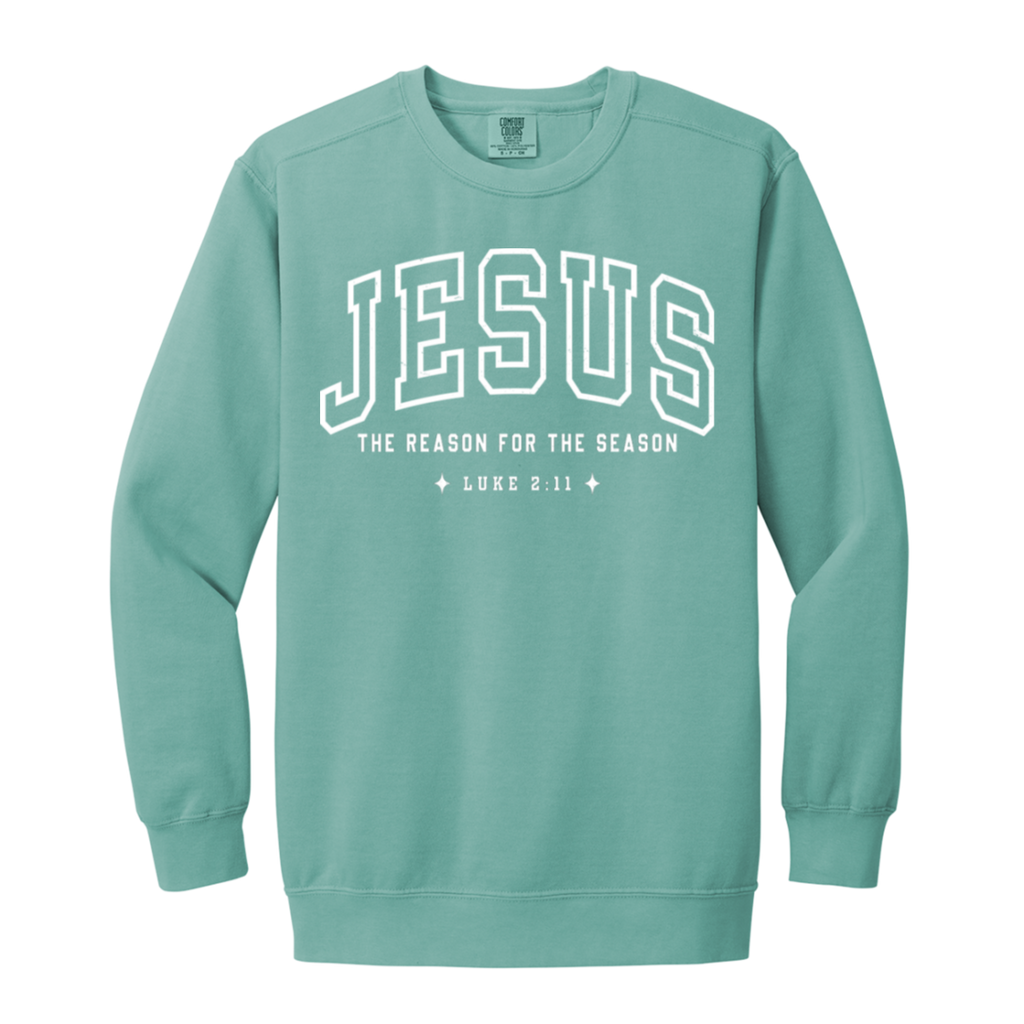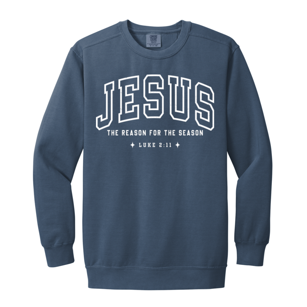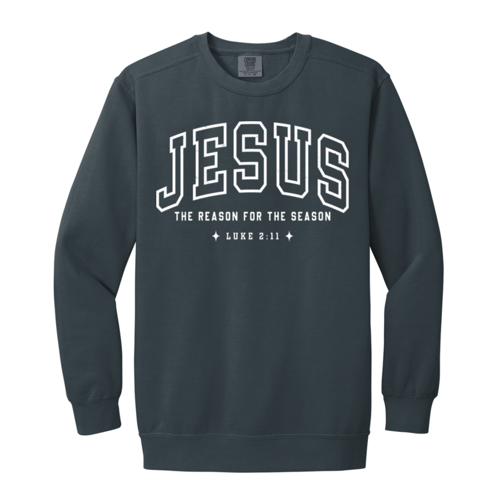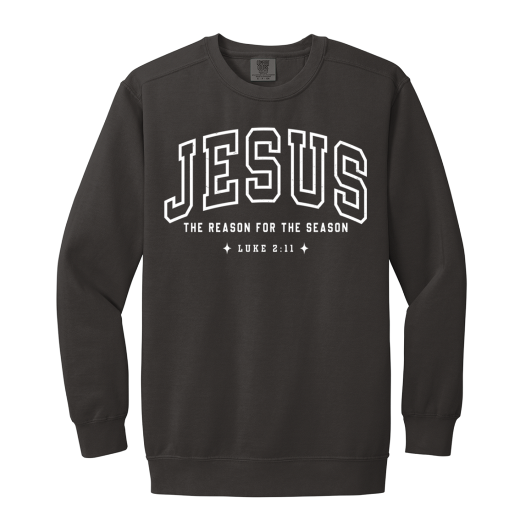 S04772 - Jesus The Reason for the Season Luke 1566 Garment-Dyed Adult Crewneck Sweatshirt