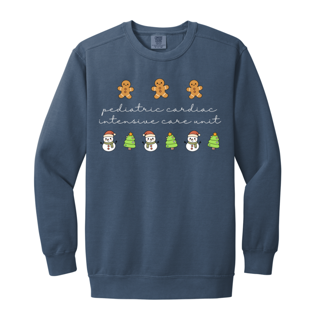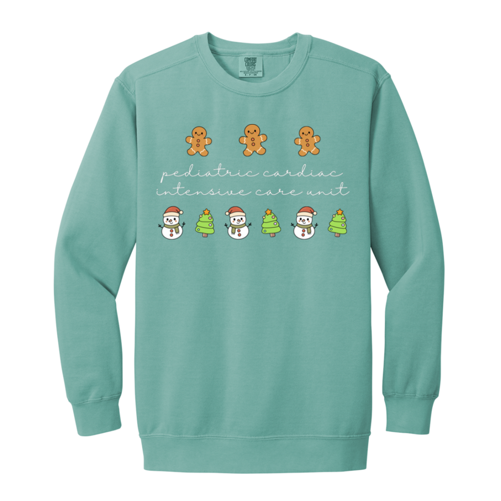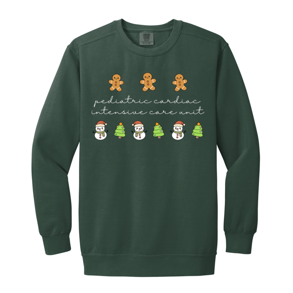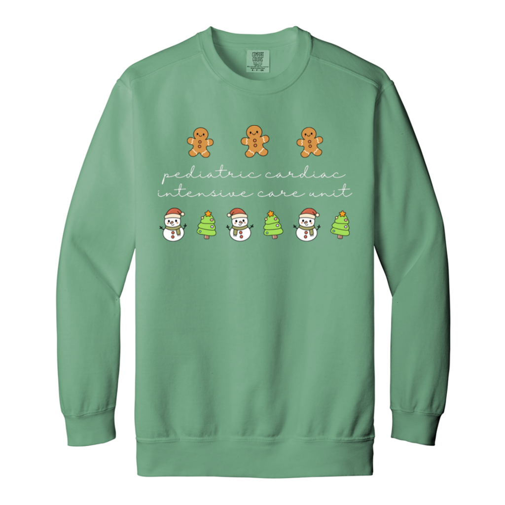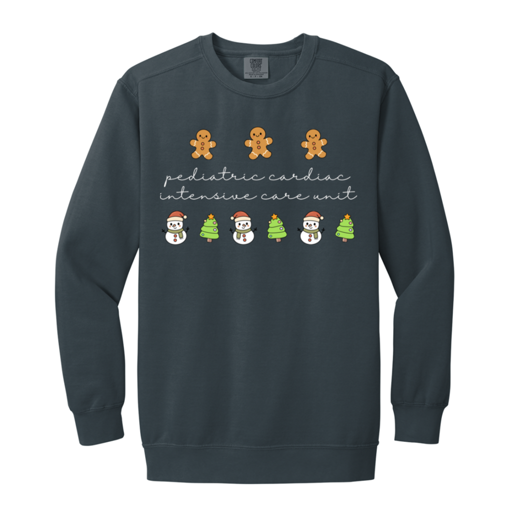 S04827 - PCICU Pediatric Cardiac ICU - White DS 1566 Garment-Dyed Adult Crewneck Sweatshirt
