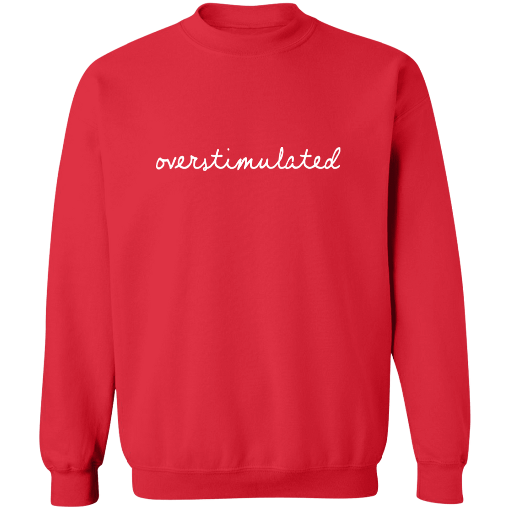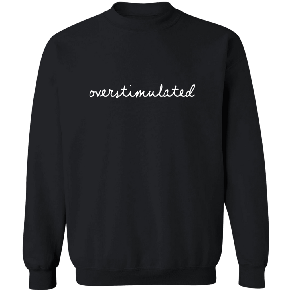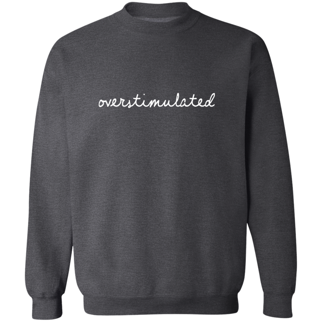 S04834 - Overstimulated - White DS G180 Gildan Crewneck Pullover Sweatshirt