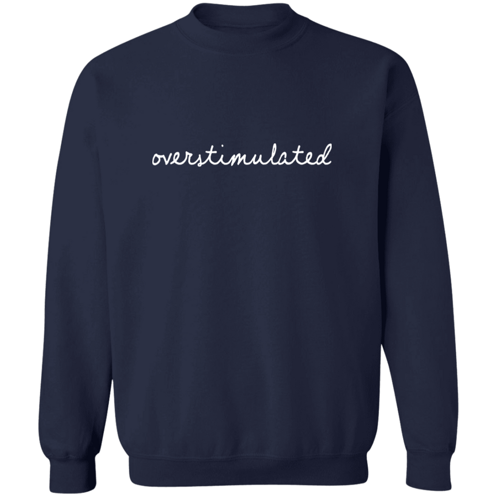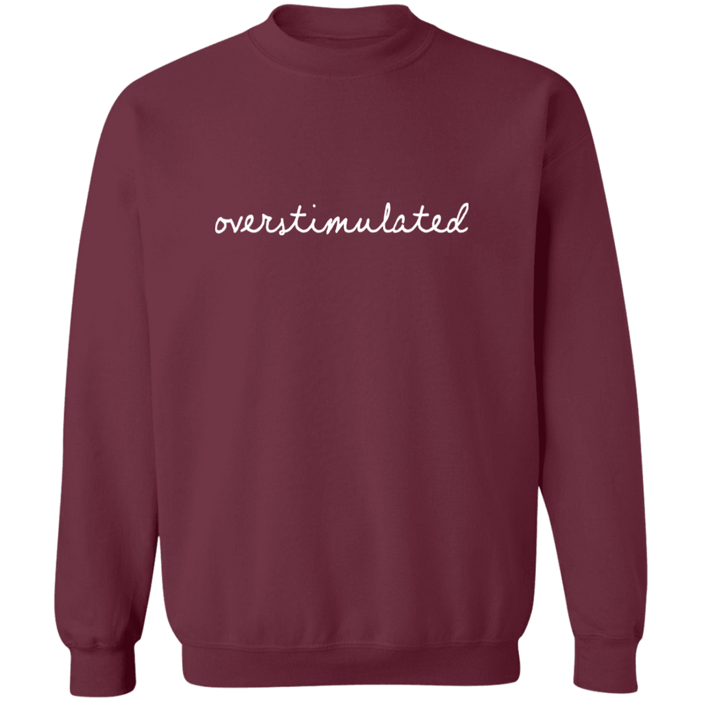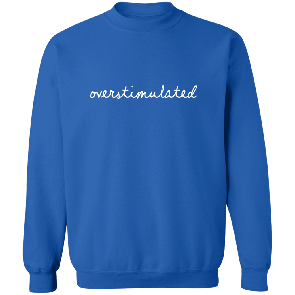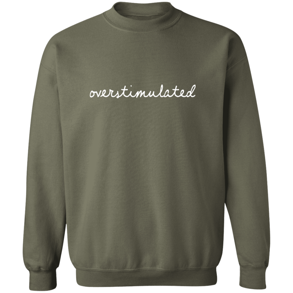 S04834 - Overstimulated - White DS G180 Gildan Crewneck Pullover Sweatshirt